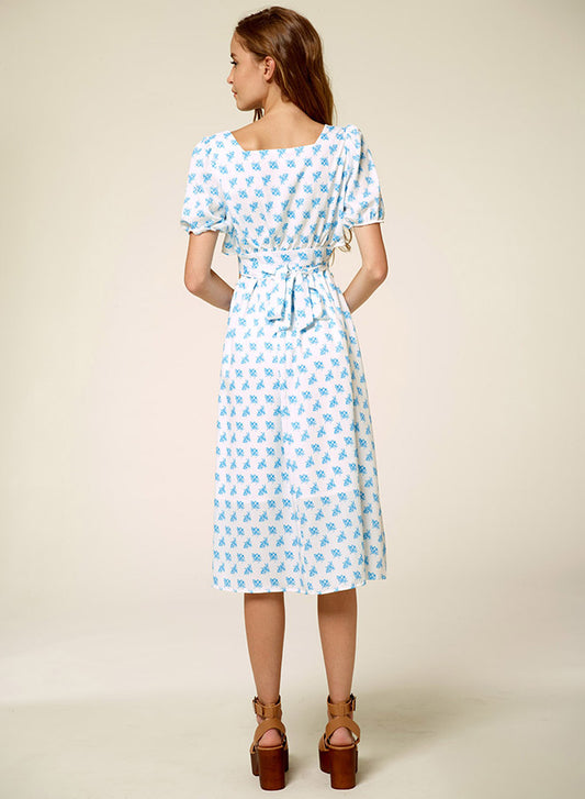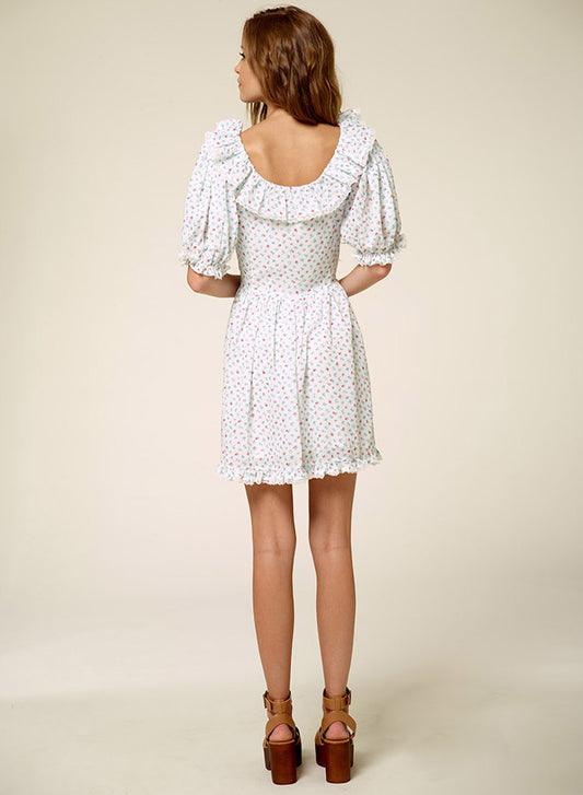 Ruffle Collar Bubble Sleeve Printed Dress