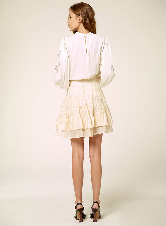 Silk Elastic Embroidered Creme Top