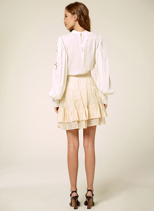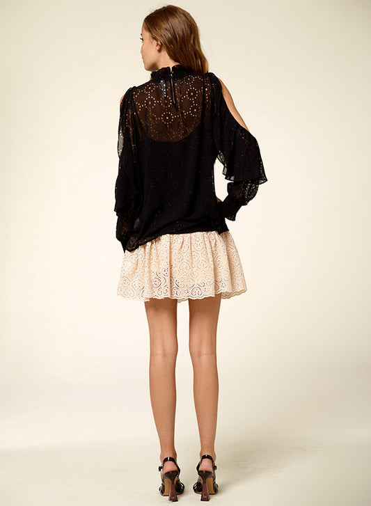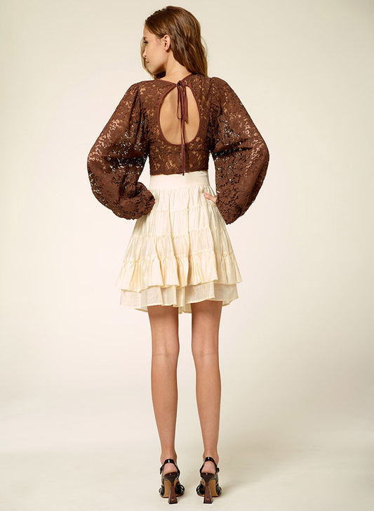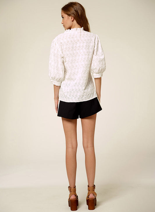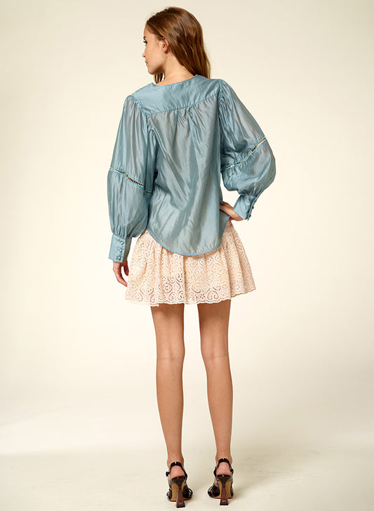 V-Neck Bubble Sleeve Embroidered Lace Shirt