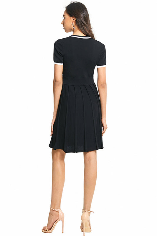 V Neck Pleated Knitting Dress