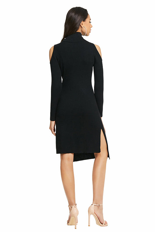 High Neck Side Slit Knitted Dress