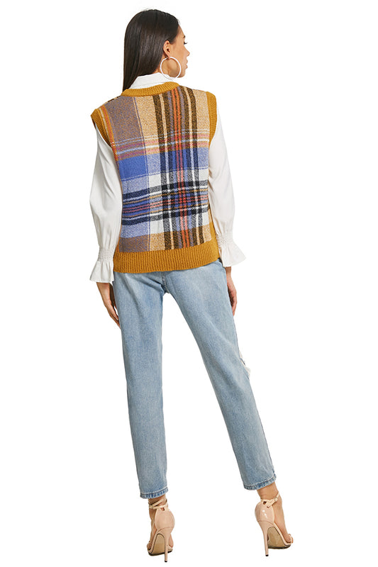 Crew Neck Plaid Knitted Vest