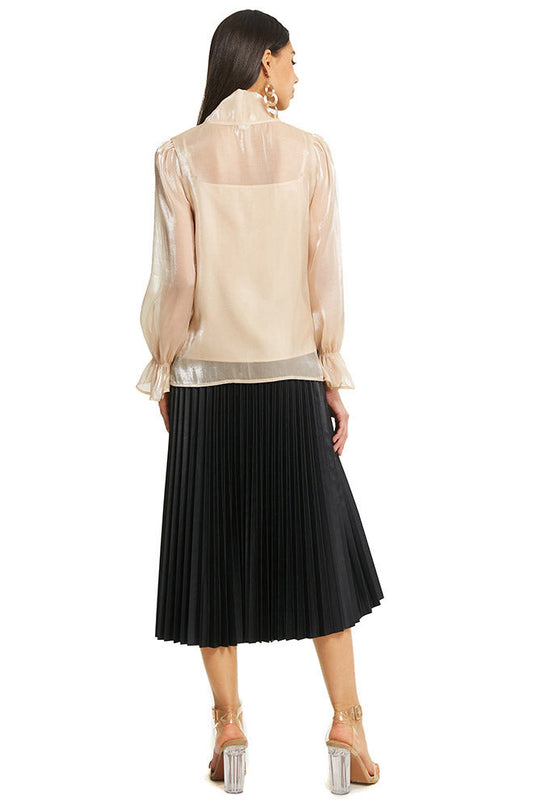 Ruffle Neck-Tied Trumpet Sleeve Top