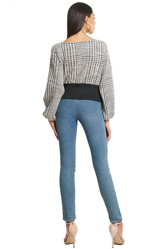 Lantern Sleeve Plaid Top