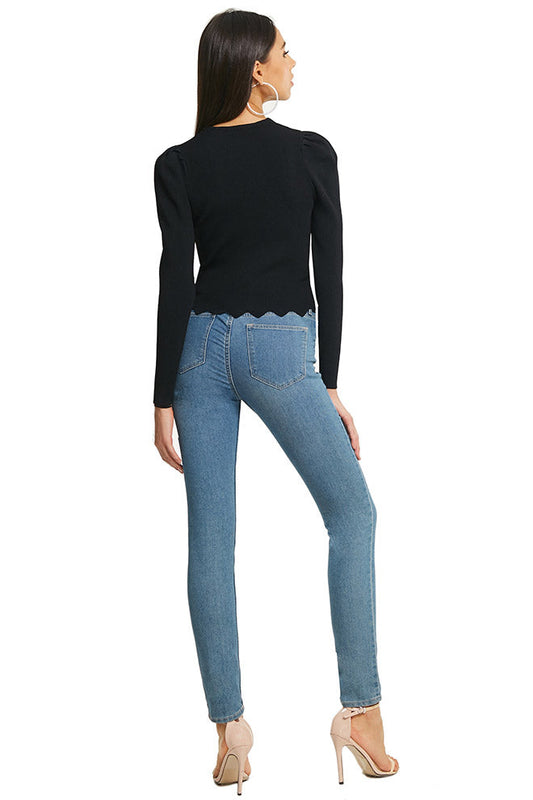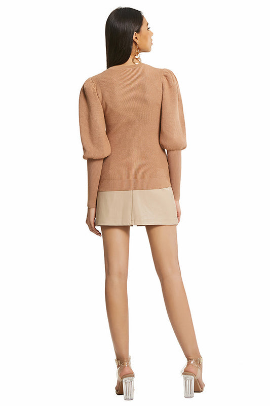 V Neck Puff Long Sleeve Top