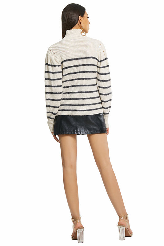 High Neck Striped Wool Top