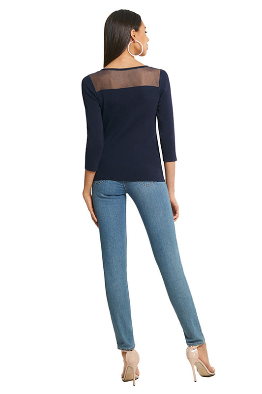3/4 Sleeve Tulle Neck Knitting Top