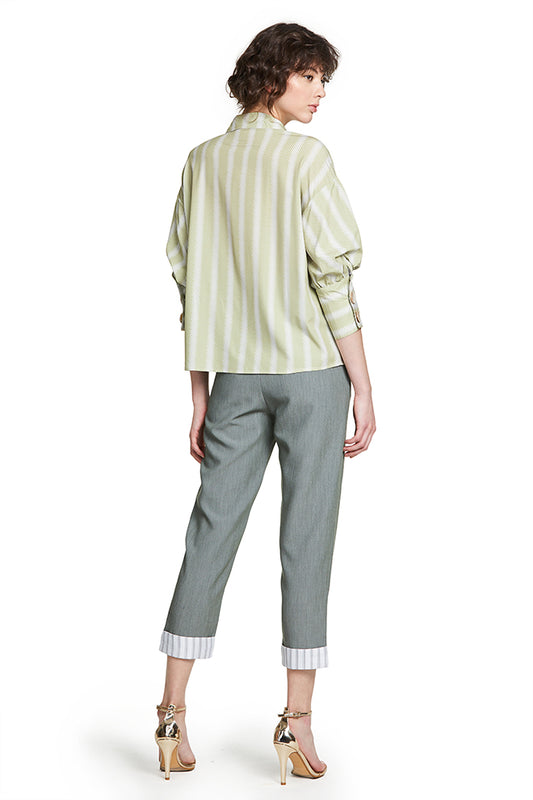 Lantern Sleeve Stripe Top With Button Detail